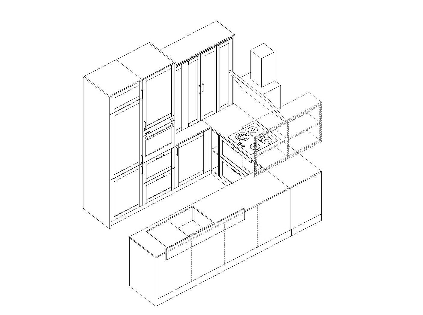Här har vi arbetat med pistagegröna köksluckor i kombination med träfanerhyllor, vitt kakel och en köksbänk i marmor för att skapa en mysig, romantisk atmosfär.