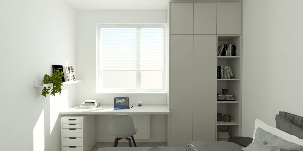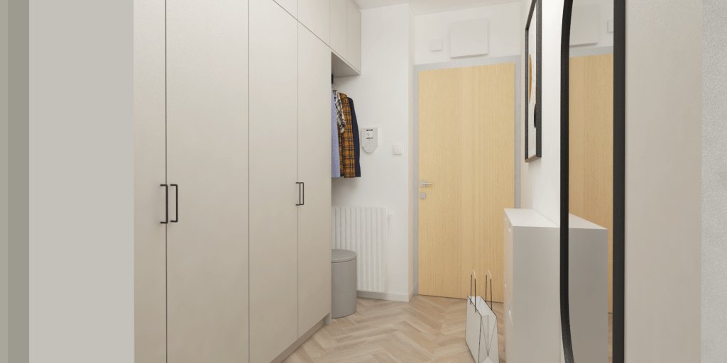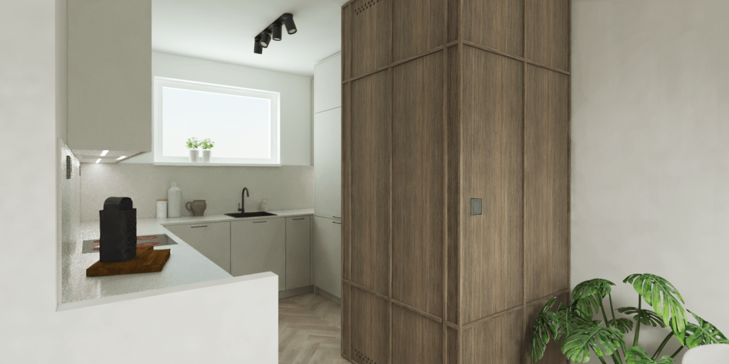 Uppdraget från kunden var att maximera förvaringsmöjligheterna i hallen, skapa en mysig arbetshörna i sovrummet och fräscha upp vardagsrummet, särskilt matplatsen. Även det gamla köket ersattes och fick större förvaringsalternativ och ljusare färger.