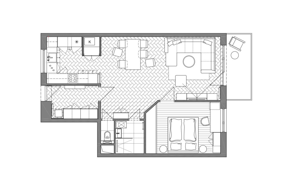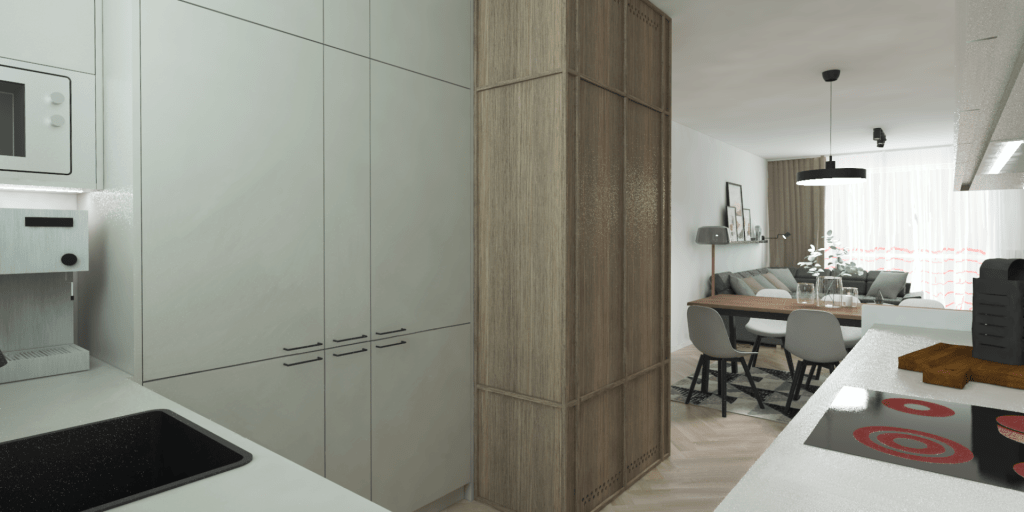 Detta projekt är en renovering av en loftgångslägenhet. Lägenheten består av ett kök, ett vardagsrum och en matsal i öppen planlösning samt ett separat sovrum med bra förvaring. Entréhallen är rymlig och har en dörr till vardagsrummet som kan stängas, vilket skapar mer integritet till lägenheten.